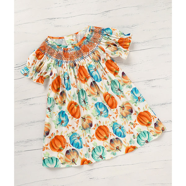 Toddler Girl's Pumpkin Smocked Dress
